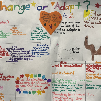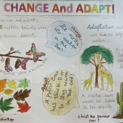 We were delighted with all the entries for the British Science Week Competition on the theme of ‘Change and Adapt’. There was a wonderful variety of topics from the changing seasons, to the adaptations of sloths and snakes, from looking at changing glaciers, the development of AI and changing flu vaccines to the life cycle of a caterpillar.