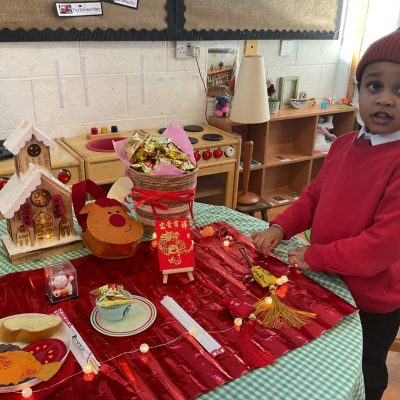 In Reception, we had a wonderful time learning about Chinese New Year! A parent visitor shared her cultural celebrations with us, bringing in beautiful decorations, chopsticks, and traditional items for the children to explore.