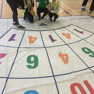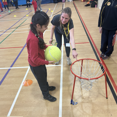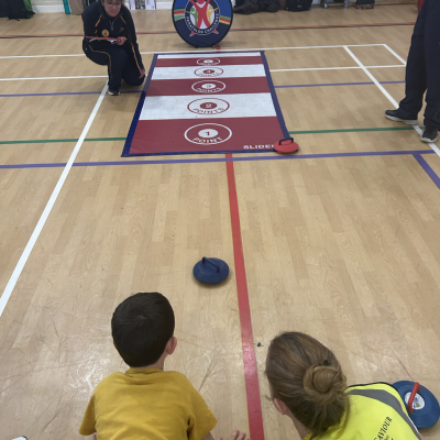 Throughout the day, children participated in activities such as Polybat, and a range of throwing challenges, including aiming for basketball hoops and a large wall target. The Kurling station proved to be a favorite, as the pupils worked hard to score as many points as possible.