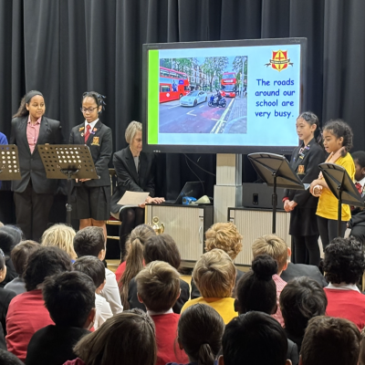 Last week was our CtS ‘Road Safety’ week. Our school travel ambassadors introduced the Road Safety week in their fantastic assembly presentation; they reminded us how our school is situated in the middle of lots of very busy roads and we all have to follow the Stop, Look, Listen, Think road safety rules to help us cross safely.