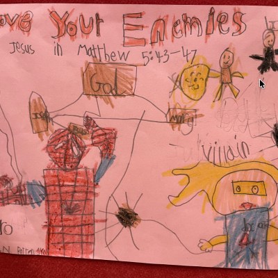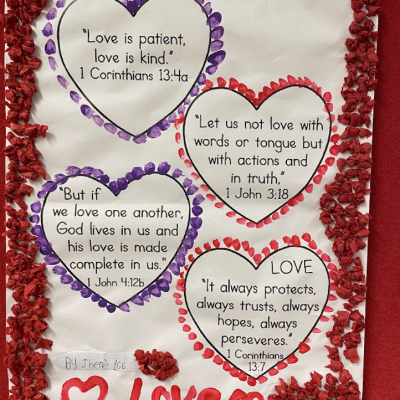 Our younger children showered us with drawings, paintings and collages of the people in their lives who they love and who show love to them. Many children also thought about and illustrated bible verses about love.