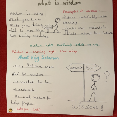 Many of our Year 6 pupils made the link between wisdom and being educated citizens and so on our display we linked the two themes together, showing how we aspire to grow up to be citizens who can make responsible and wise choices about our world, the environment, democracy and our communities. We hope you enjoy browing the gallery below!