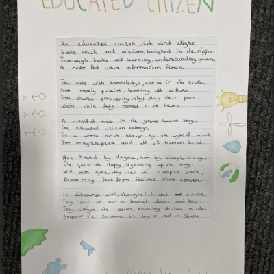 We have really enjoyed the wonderful work that the children submitted for our School Vision Project this Autumn Term. It has been inspiring to see the children’s reflections on the themes of wisdom and being educated citizens.