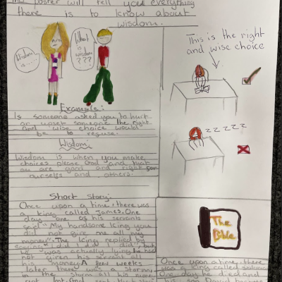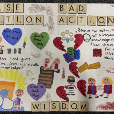 Many of the projects on the theme of wisdom reflected upon the biblical stories of King Solomon and the wise words of wisdom that can be found in the  book of Proverbs. Other children used their projects to show and encourage us all to wise actions; the theme of wisdom inspired some really creative ideas, such as the jar of wisdom, the wisdom tree and the wisdom wheel which are all shown below.