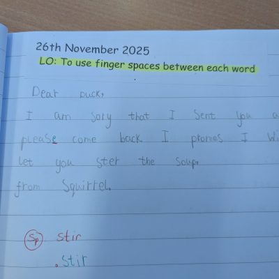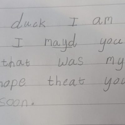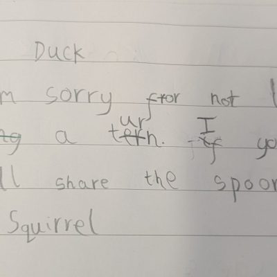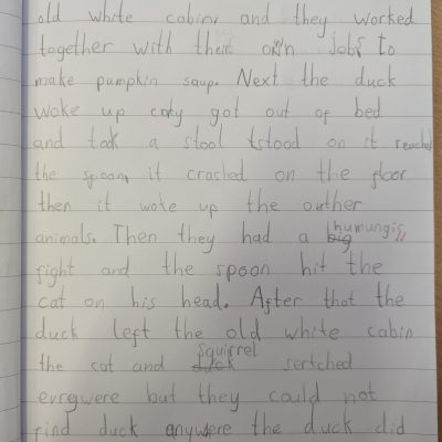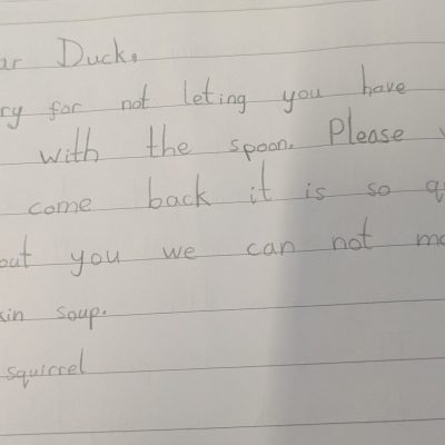 “I liked the bit when the Cat and the Squirrel went  looking  for Duck. They really missed him.” Maria 1GG