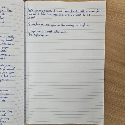 “I liked the poem. At first, the poem was romantic and nice but towards the end it got kind of scary and then it had a happy ending. It was my first time writing an emotive letter. At first, I didn’t know what to write but I felt proud of myself after finishing my letter.” – Sesait, 5AJ