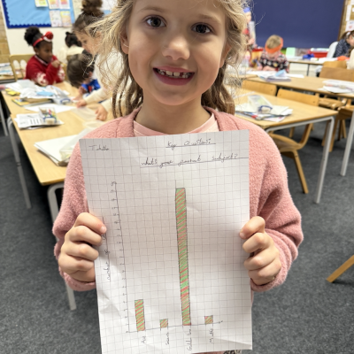 Our Year 3 children have been amazing Mathematicians this term and have been exploring statistics. As part of this, they created their own surveys and visited different year groups to collate their data. They then returned to class to analyse this data and create bar graphs which they presented to the class. The children had a lot of fun whilst gaining key skills in data handling.