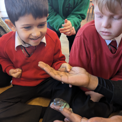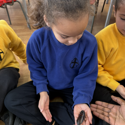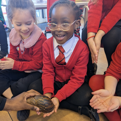 Year One welcomed some new visitors today when Zoolab came to speak to the children about different types of animals, from reptiles to insects.