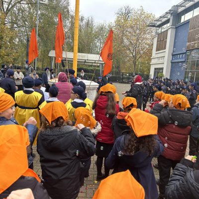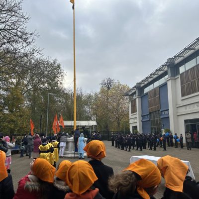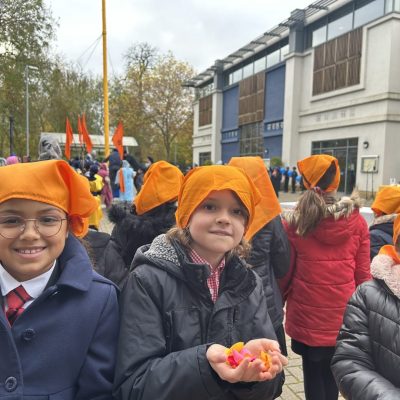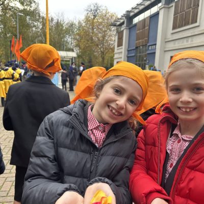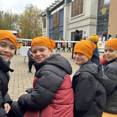 Last week a group of Year 4 worship leaders visited Khalsa Primary School to join their celebrations for the birthday of Guru Nanak. We took the Elizabeth Line to Southall Station and noticed the sign was written in English and Punjabi. This was a language that was used in most of the celebrations we observed and joined in with during the morning. When we took the 120 bus through Southall we drove past a large Gurdwara, which is a place of worship for Sikh’s, a Church, a place of worship for Christians and a Mosque, a place of worship for Muslims. This showed us that Southall is a vibrant multi faith community in Ealing.
