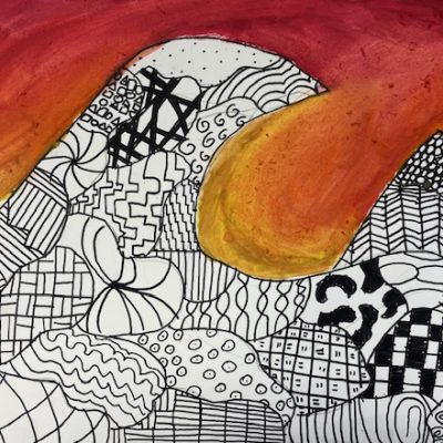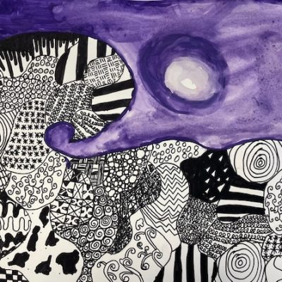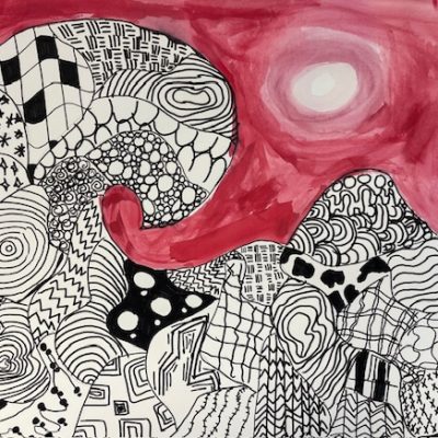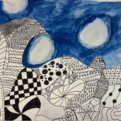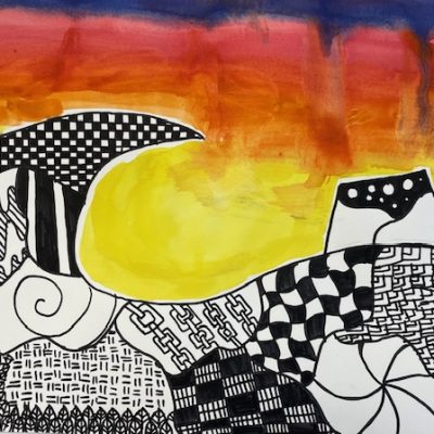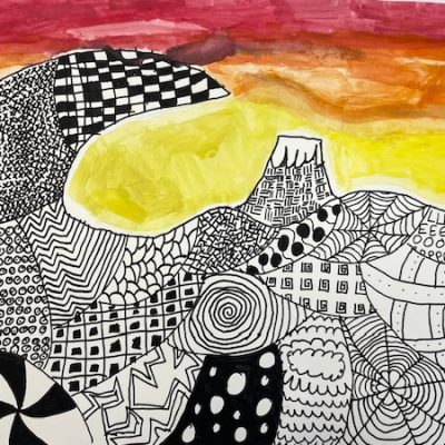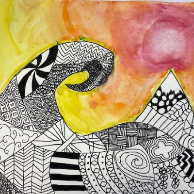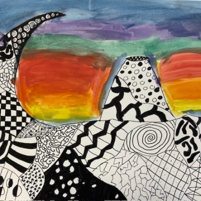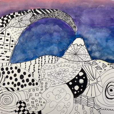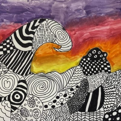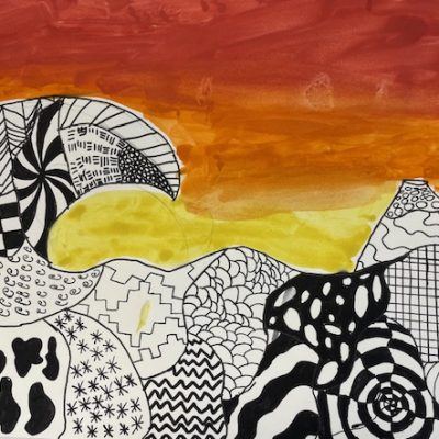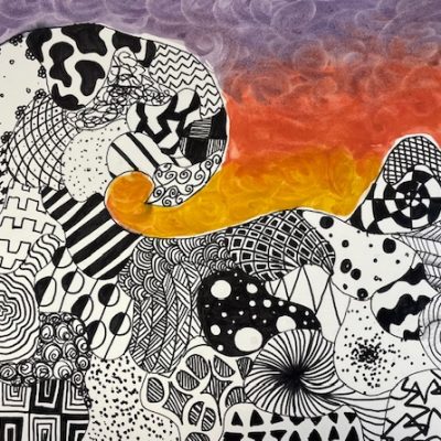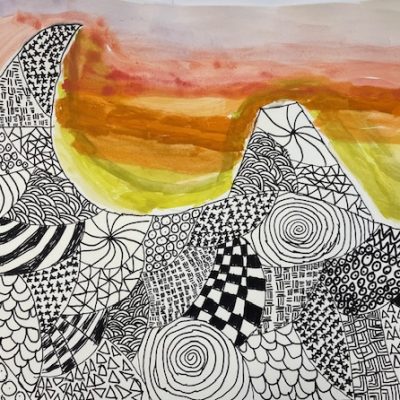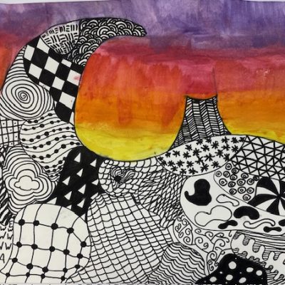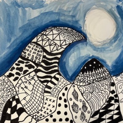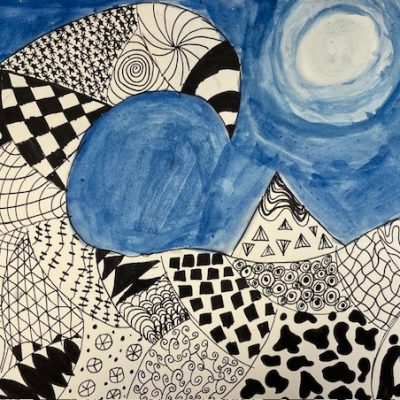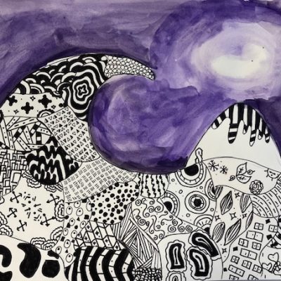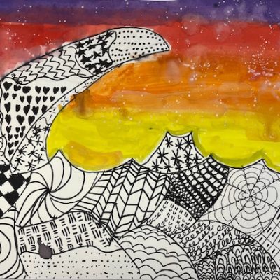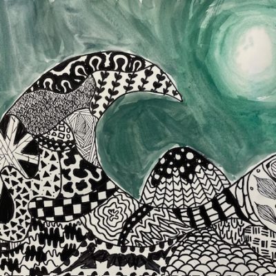 This term in art, Year 6 have been looking at Hokusai’s print of ‘The Great Wave’. Pupils have interpreted it in their own way using zentangle patterns created in marker pens with a watercolour background. The results are stunning – well done Year 6!