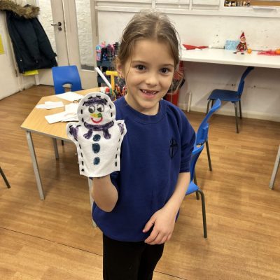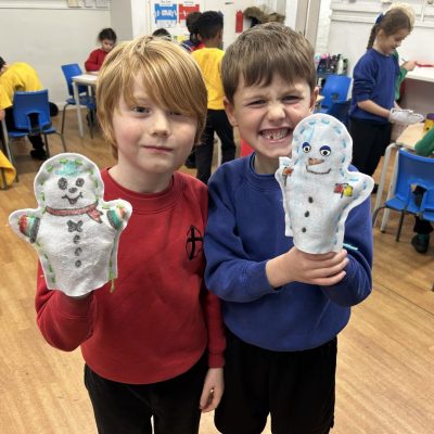 Year 2 had a fantastic DT Day creating their very own snowman hand puppets. The children practised important sewing skills, learning how to do both a running stitch and an overstitch. They then put these skills into practice to carefully sew their puppets together as well as add accessories such as hats and bow ties.