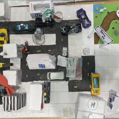This term the children have been designing and constructing their very own small-scale, town plans, in order to produce inspired, eye-catching models. Drawing from their learning specifically around coordinates, 3D shapes and our local geography, these models – built on 100cm x 80cm cardboard baseplates – showcase a culmination of skills. You can enjoy the mini cities when walking through the atrium, see if you can find Batman standing on a cuboid shaped building and 2 mermaids in cylindrical pools!